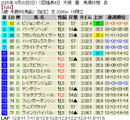 【LB指数レポート】2025/04/20 [皐月賞]ミュージアムマイル [3歳1勝C]マテンロウサン・マックアルイーン [3歳未勝利]アスクヴォルテージ・ピジョンポイント・ルトンワージ・ルールーリマ・アンダースコア・エレガンシア