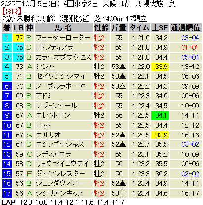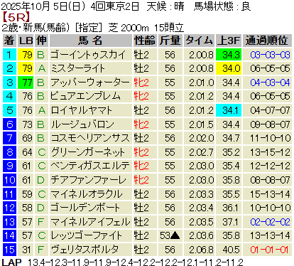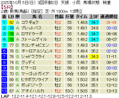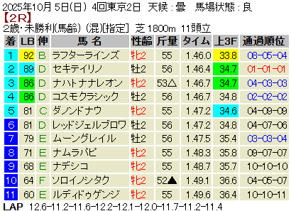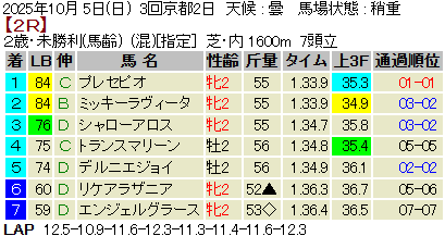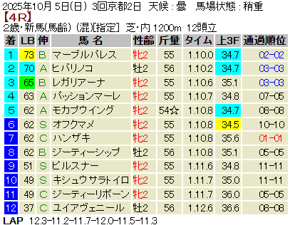 【LB指数レポート】2025/10/05 [2歳新馬]ゴーイントゥスカイ・コウギョク・マーブルパレス [2歳未勝利]フェーダーローター・ラフターラインズ・プレセピオ