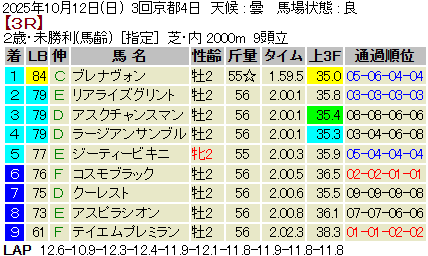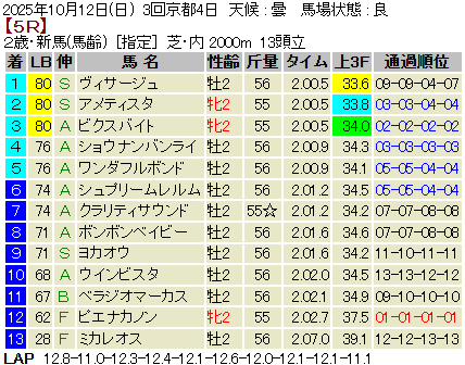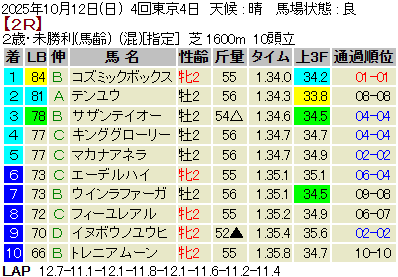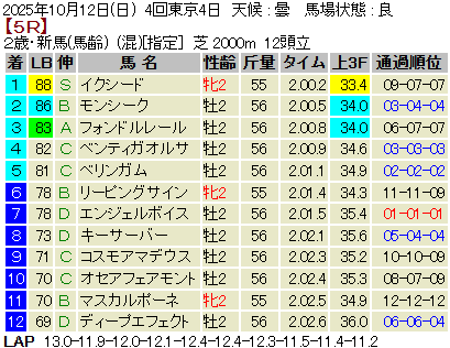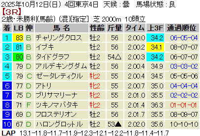 【LB指数レポート】2025/10/12 [2歳新馬]イクシード・ヴィサージュ [2歳未勝利]チャリングクロス・ブレナヴォン・コズミックボックス
