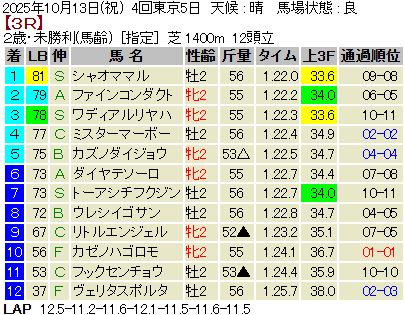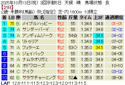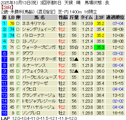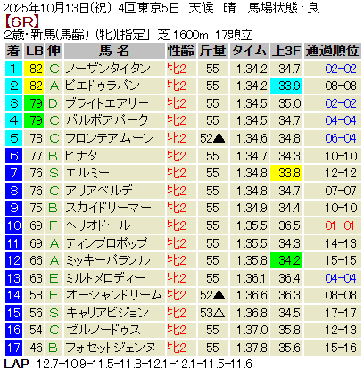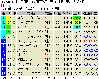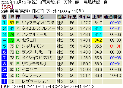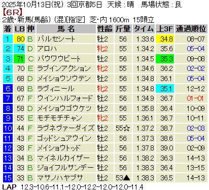 【LB指数レポート】2025/10/13 [2歳新馬]バルセシート・ノーザンタイタン・ジャスティンビスタ・スタニングレディ [2歳未勝利]ネネキリマル・シャオママル・メイプルハッピー