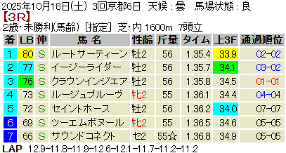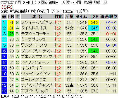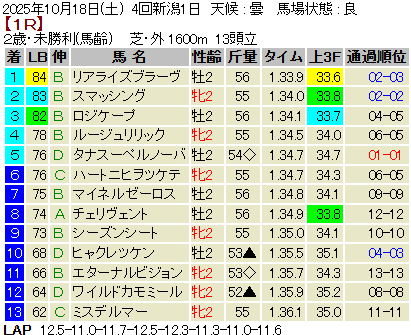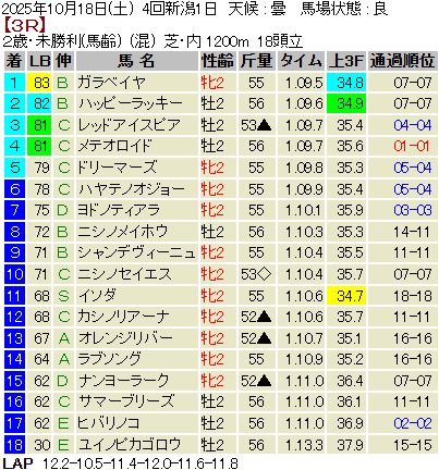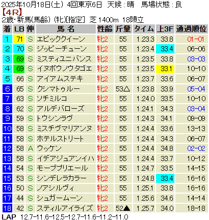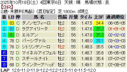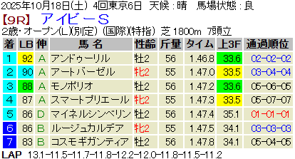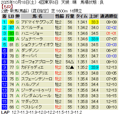 【LB指数レポート】2025/10/18 [アイビーS]アンドゥーリル [2歳新馬]アドマイヤクワッズ・スウィートハピネス・エピッククイーン [2歳未勝利]ダノンセフィーロ・ルートサーティーン・ガラベイヤ・リアライズブラーヴ