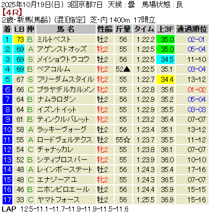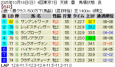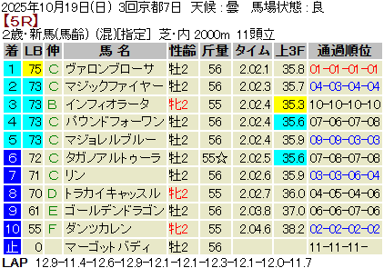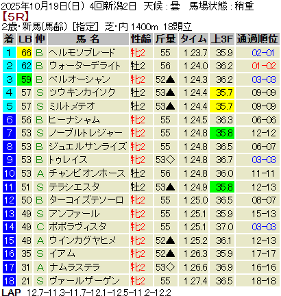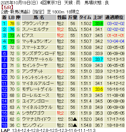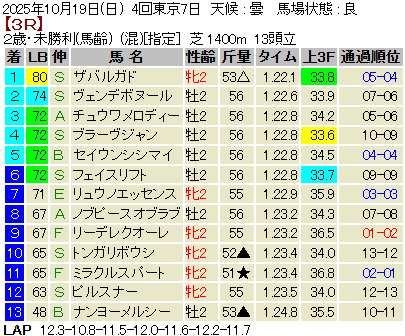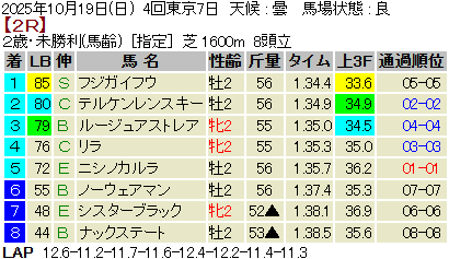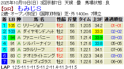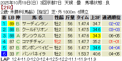 【LB指数レポート】2025/10/19 [もみじS]リリージョワ [2歳1勝C]サンアントワーヌ [2歳新馬]ヴァロンブローサ・ブラウンバナナ・ヘルモソブレード・ミルトベスト [2歳未勝利]ザバルガド・サーディンラン・フジガイフウ・ステラスペース
