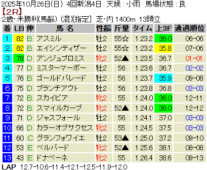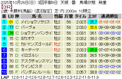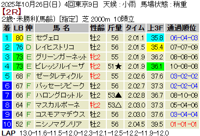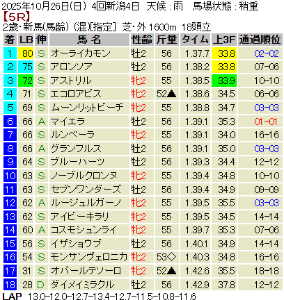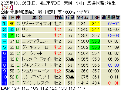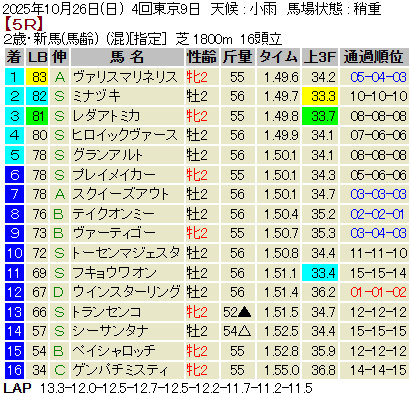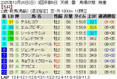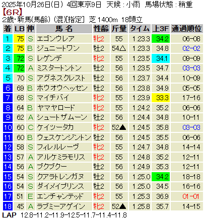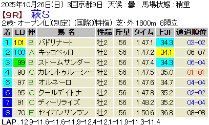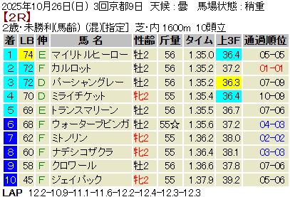 【LB指数レポート】2025/10/26 [萩S]バドリナート [2歳新馬]エゴンウレア・テルヒコウ・ヴァリスマリネリス・オーライカモン [2歳未勝利]メイショウソラリス・リゾートアイランド・マイリトルヒーロー・セヴェロ・アスミル