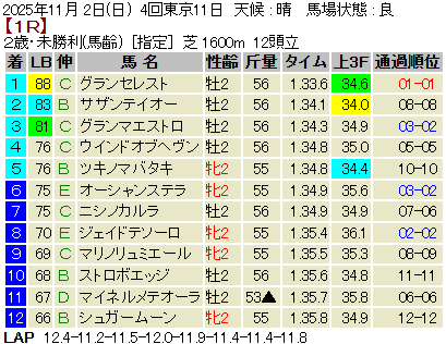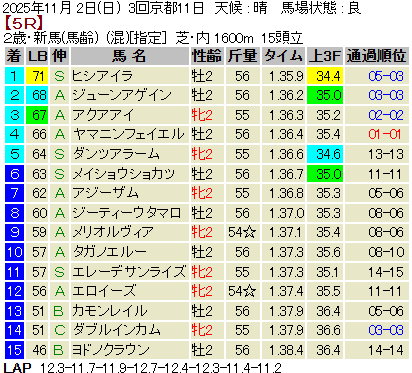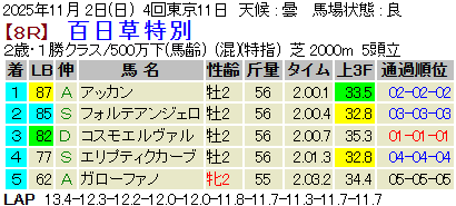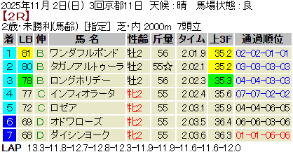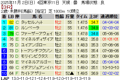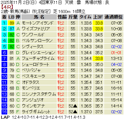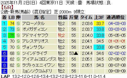 【LB指数レポート】2025/11/02 [百日草特別]アッカン [2歳新馬]アローメタル・ヒシアイラ・モートンアイランド [2歳未勝利]タッセルノット・ワンダフルボンド・グランセレスト