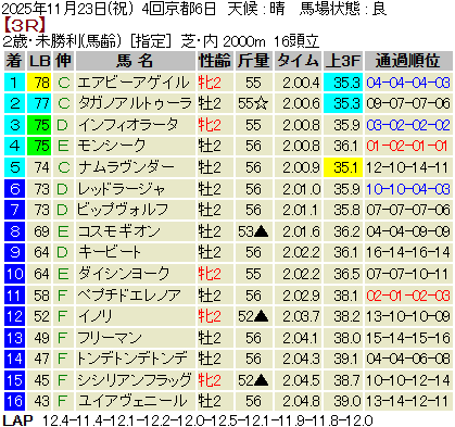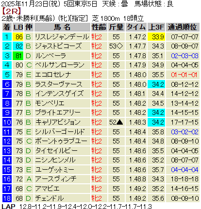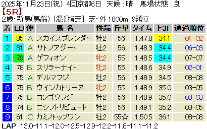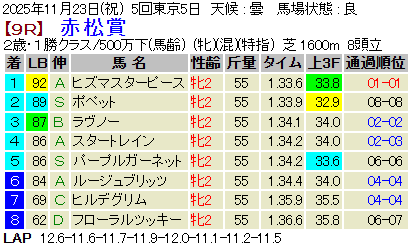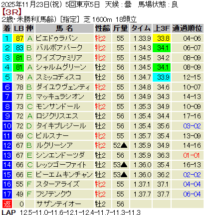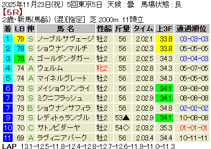 【LB指数レポート】2025/11/23 [赤松賞]ヒズマスターピース [2歳新馬]スカイスプレンダー・ノーブルサヴェージ [2歳未勝利]エアビーアゲイル・ピエドゥラパン・リスレジャンデール