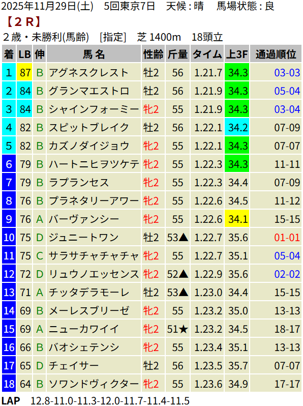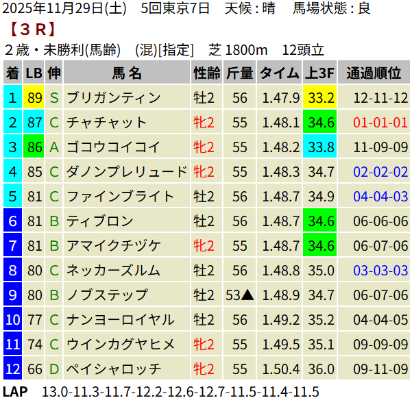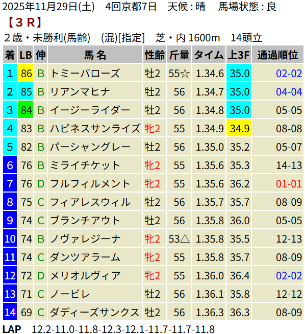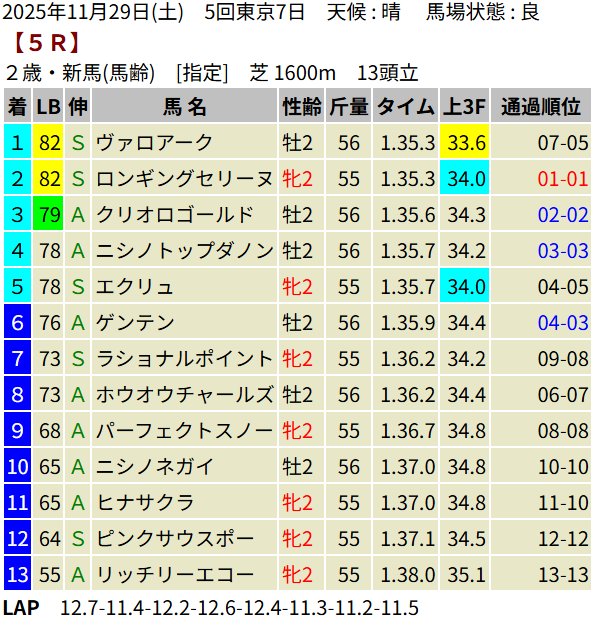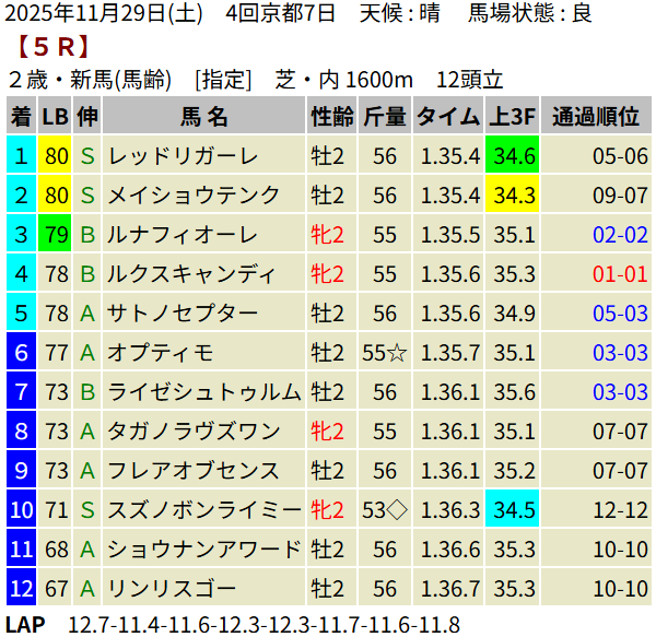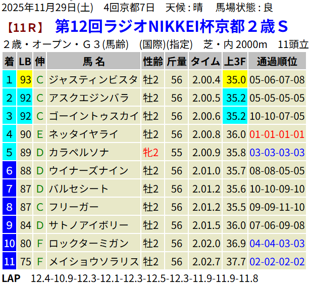 【LB指数レポート】2025/11/29 [京都2歳S]ジャスティンビスタ [2歳新馬]レッドリガーレ・ヴァロアーク [2歳未勝利]トミーバローズ・ブリガンティン・アグネスクレスト