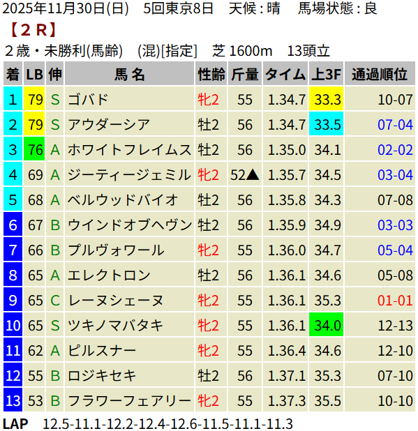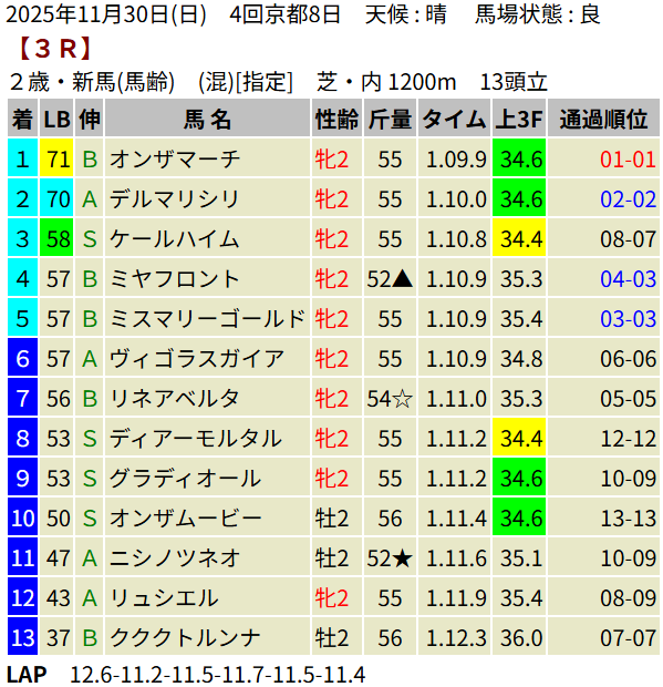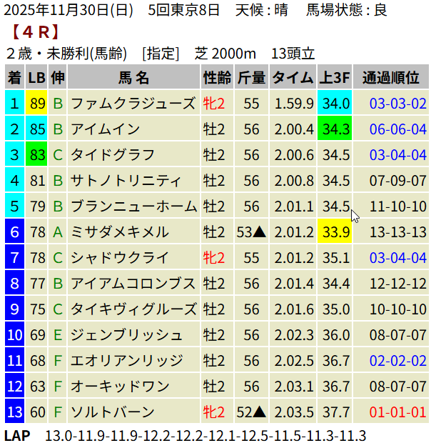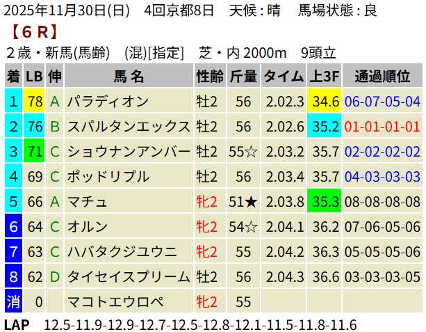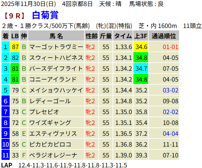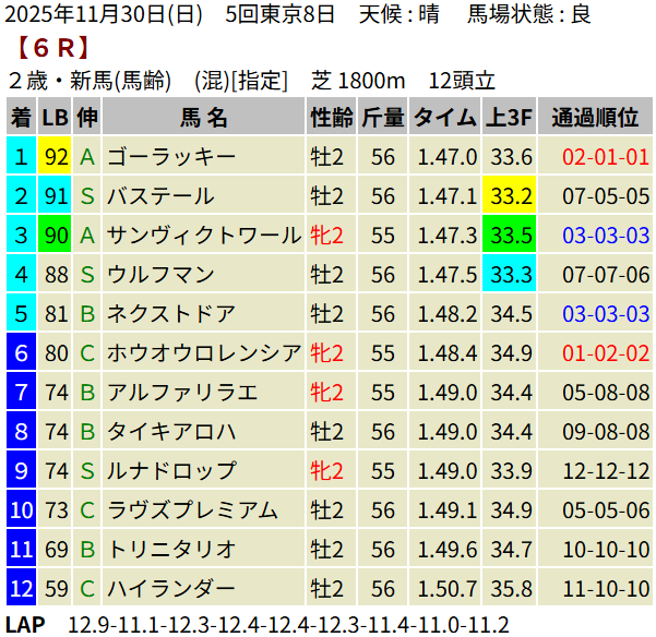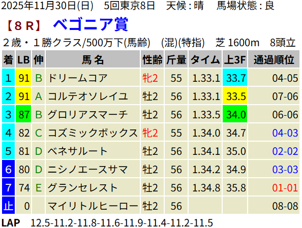 【LB指数レポート】2025/11/30 [ベゴニア賞]ドリームコア [白菊賞]マーゴットラヴミー [2歳新馬]パラディオン・ゴーラッキー・オンザマーチ [2歳未勝利]ファムクラジューズ・サウンドムーブ・ゴバド