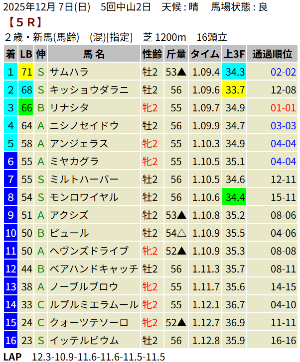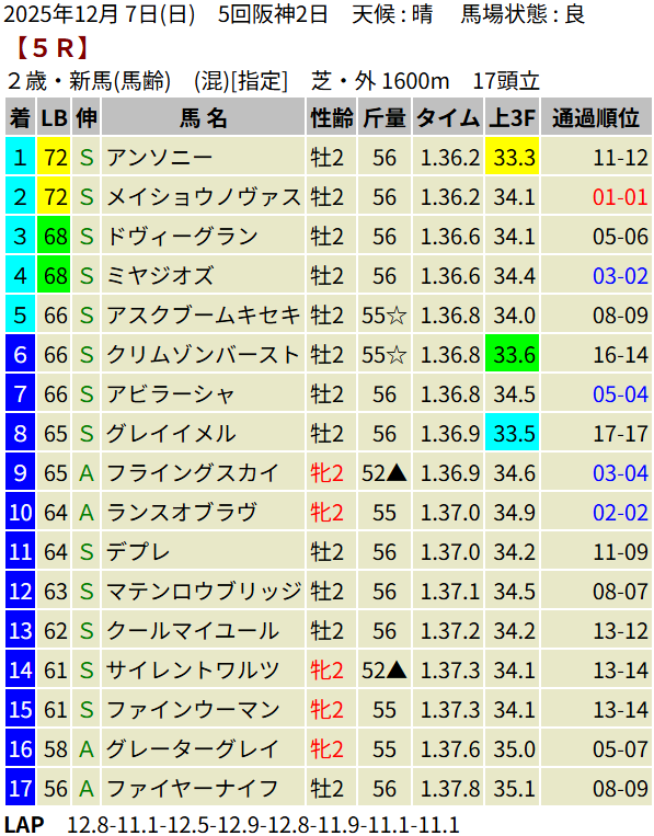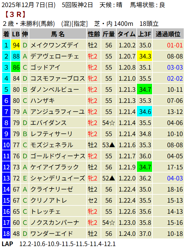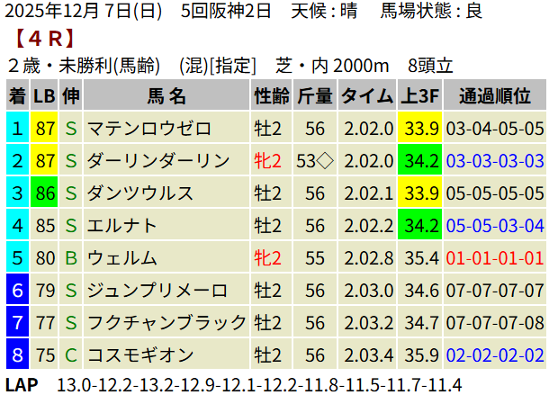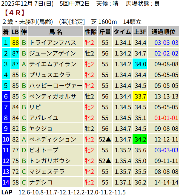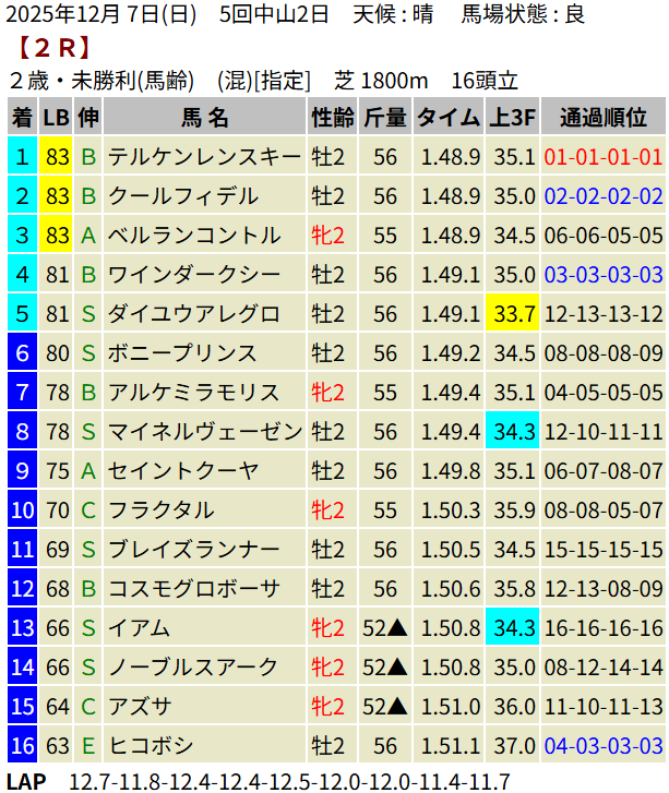 【LB指数レポート】2025/12/07 [2歳新馬]ゴーゴーリチャード・サムハラ・アンソニー [2歳未勝利]トライアンフパス・マテンロウゼロ・メイクワンズデイ・テルケンレンスキー