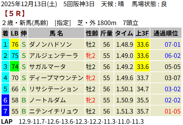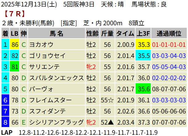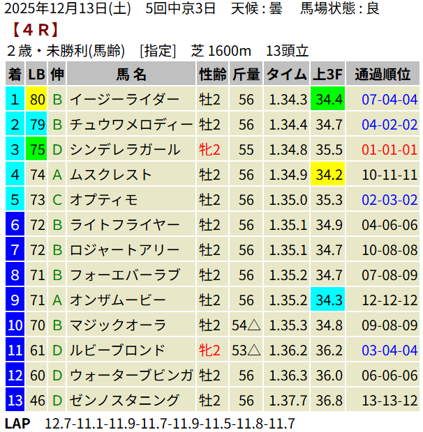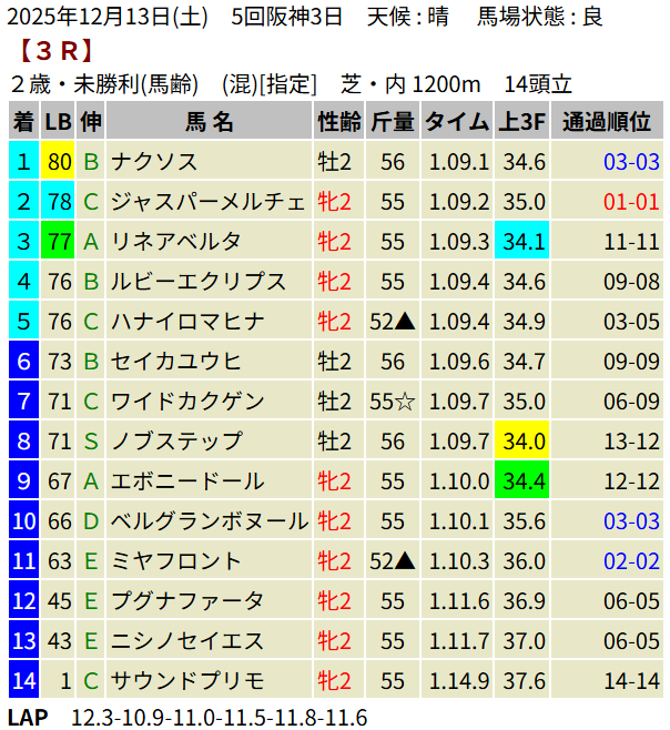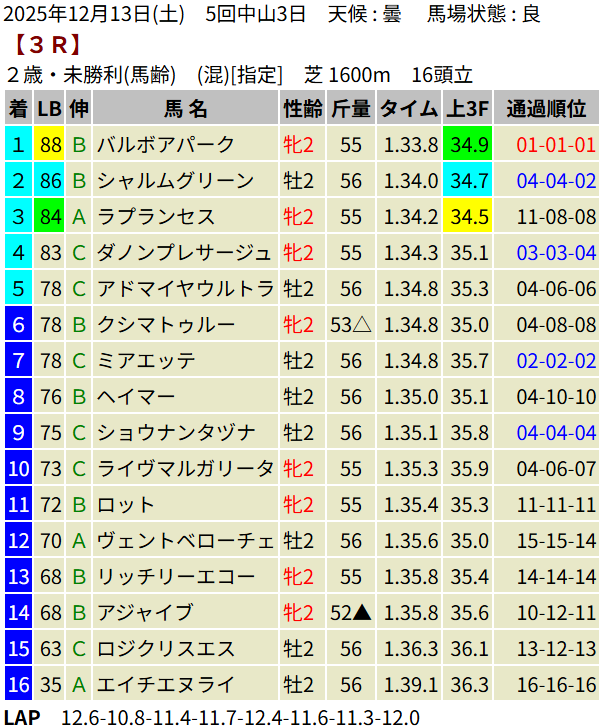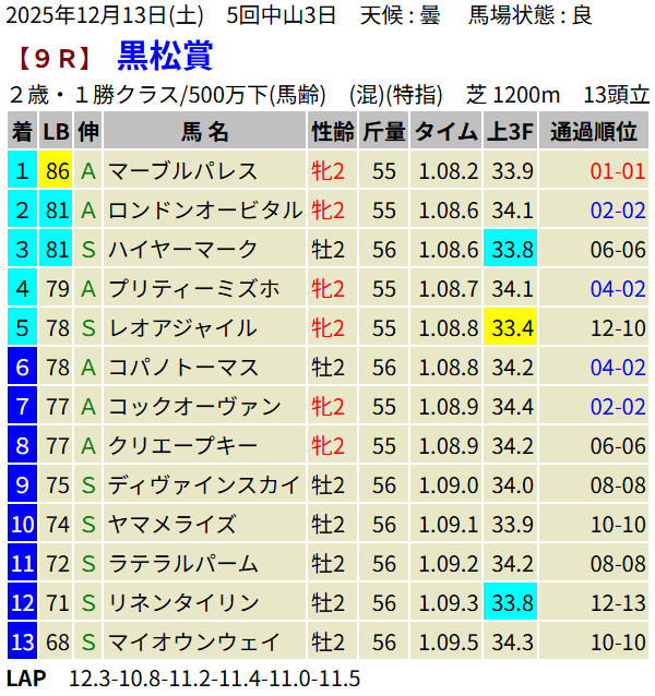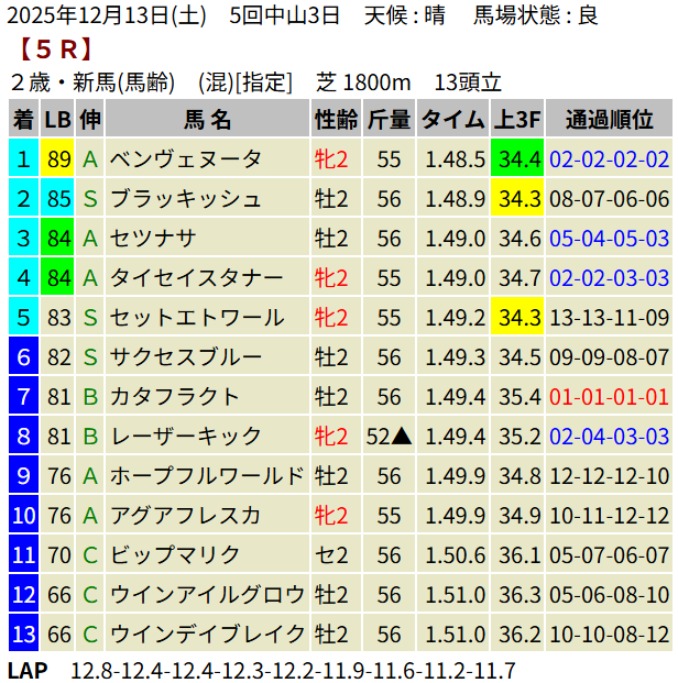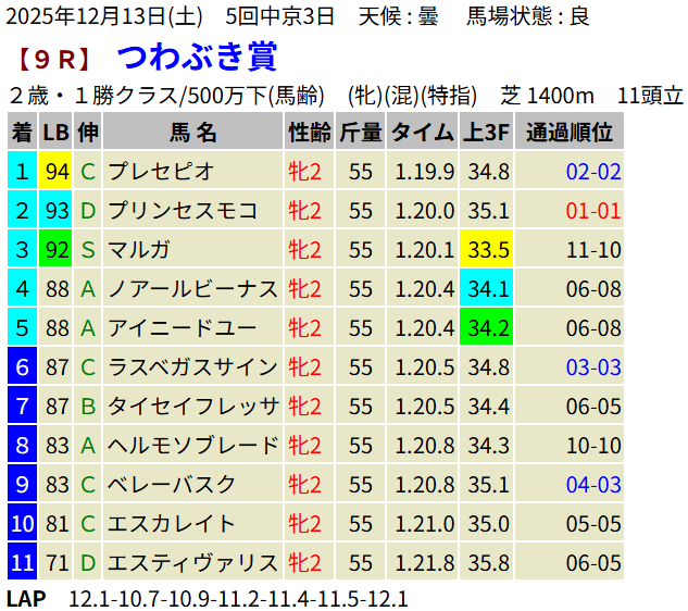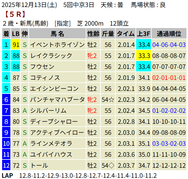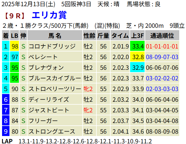 【LB指数レポート】2025/12/13 [エリカ賞]コロナドブリッジ [つわぶき賞]プレセピオ [黒松賞]マーブルパレス [2歳新馬]イベントホライゾン・ベンヴェヌータ・ダノンハドソン [2歳未勝利]ヨカオウ・イージーライダー・バルボアパーク・ナクソス