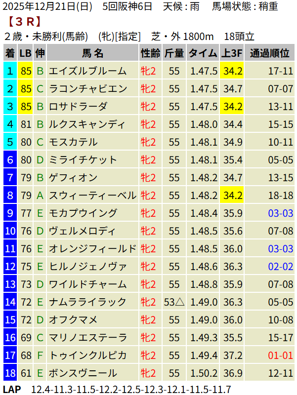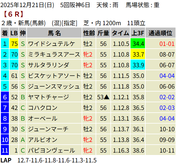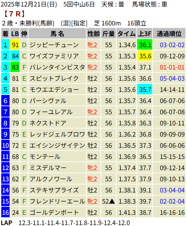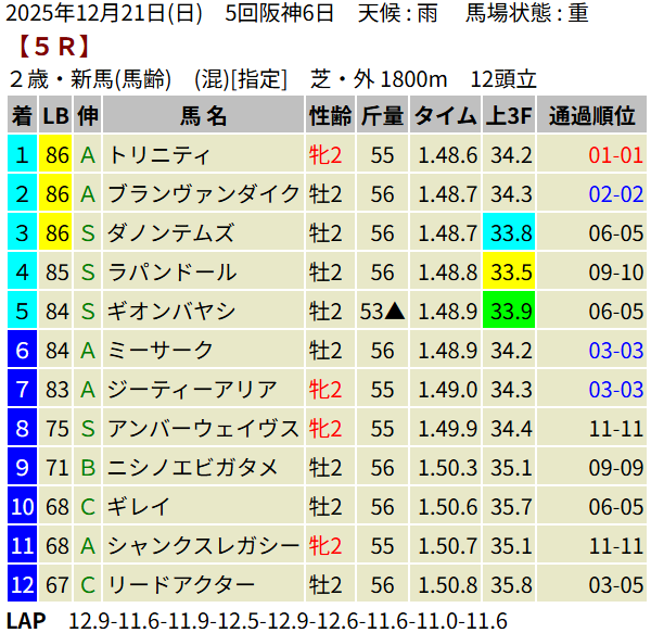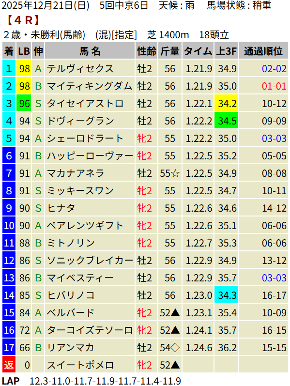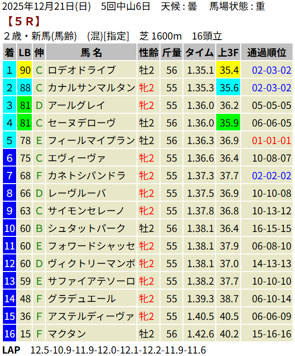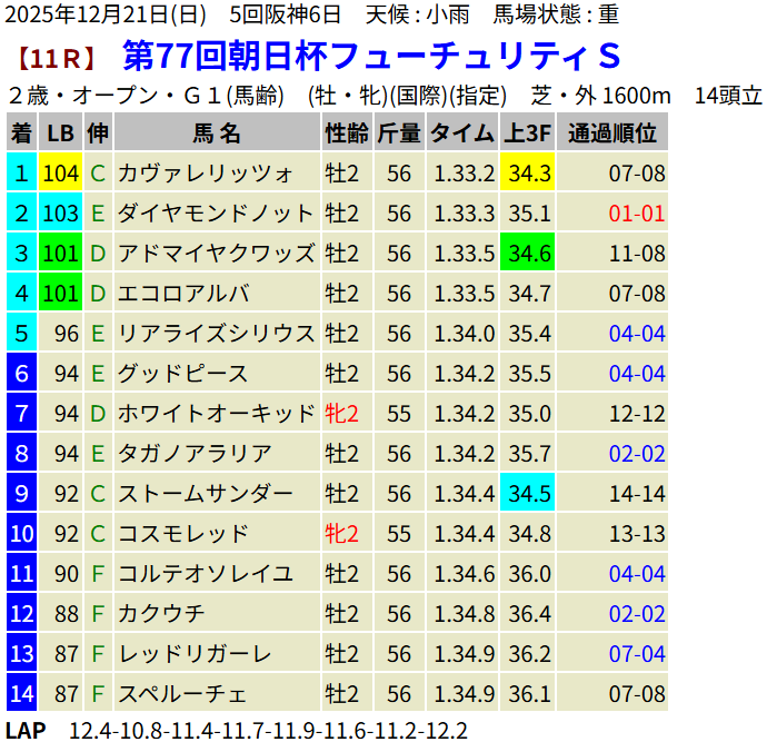 【LB指数レポート】2025/12/21 [朝日杯FS]カヴァレリッツォ [2歳新馬]ワイドシュテルケ・トリニティ・ロデオドライブ [2歳未勝利]ジッピーチューン・テルヴィセクス・エイズルブルーム・ロンギングセリーヌ
