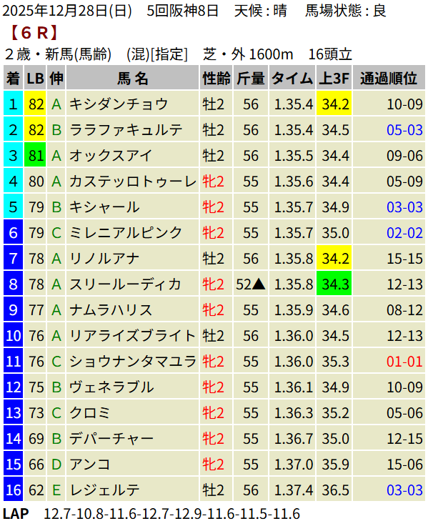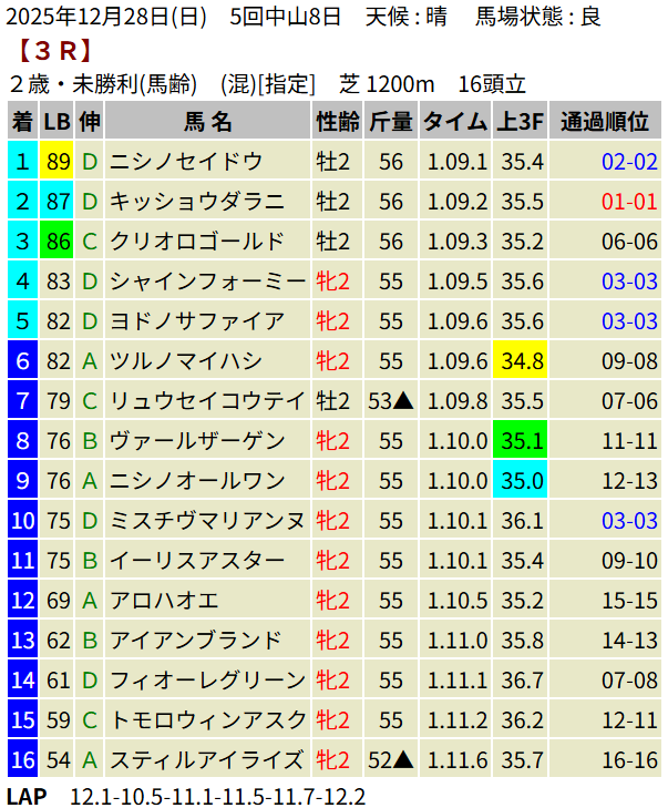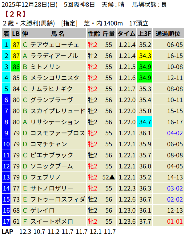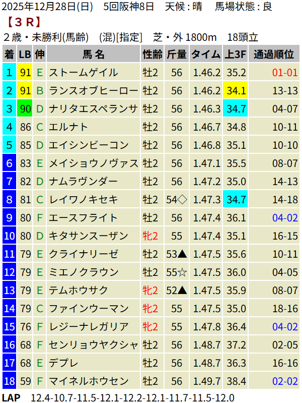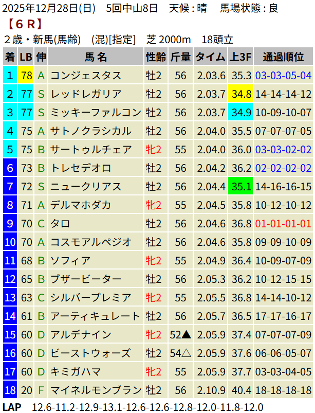 【LB指数レポート】2025/12/28 [2歳新馬]コンジェスタス・キシダンチョウ [2歳未勝利]ニシノセイドウ・ストームゲイル・デアヴェローチェ