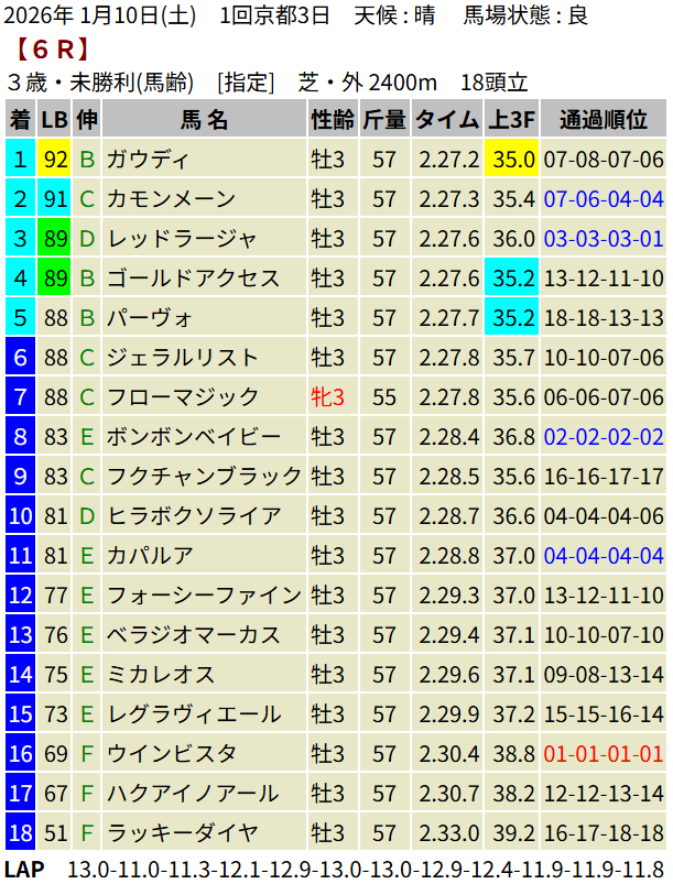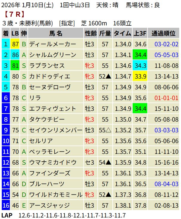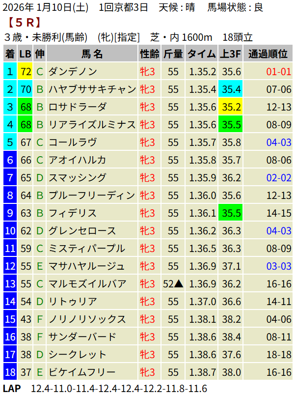 【LB指数レポート】2026/01/10 [3歳新馬]ランザワールド [3歳未勝利]ディールメーカー・ガウディ・ダンデノン