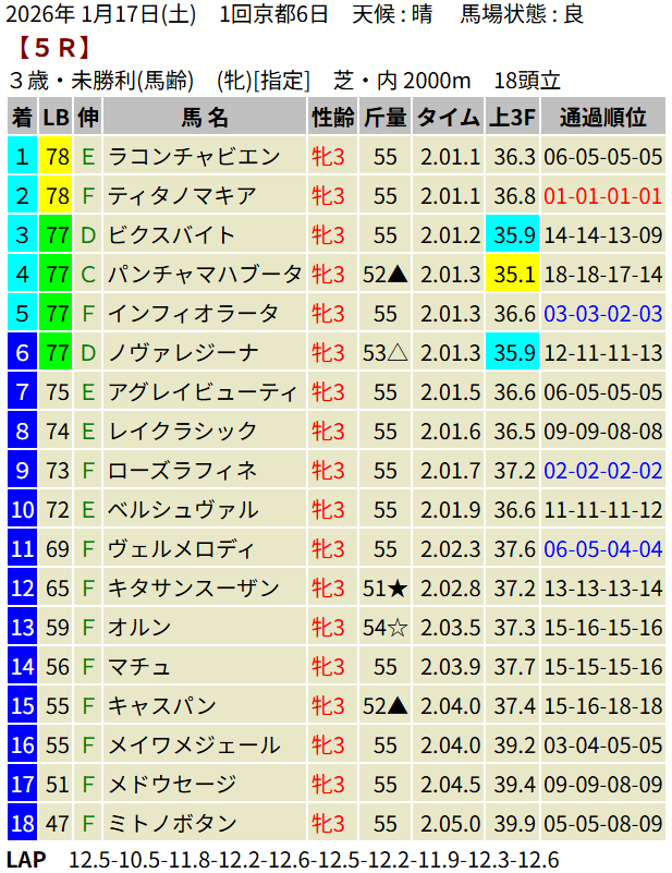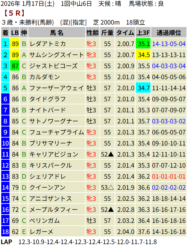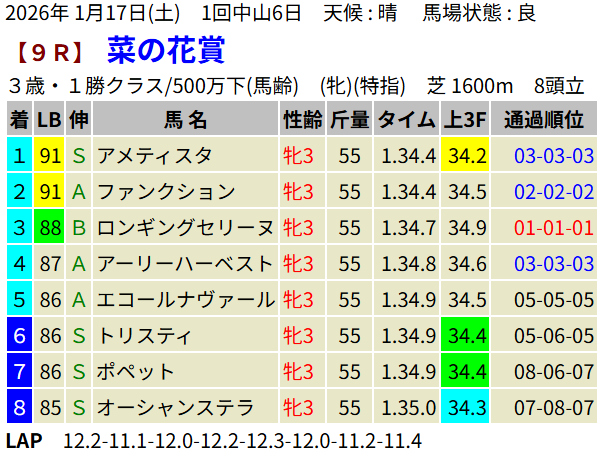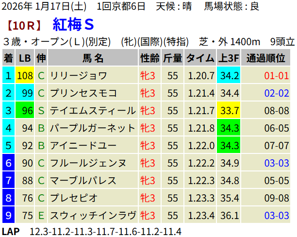 【LB指数レポート】2026/01/17 [紅梅S]リリージョワ [菜の花賞]アメティスタ [3歳未勝利]レダアトミカ・ラコンチャビエ