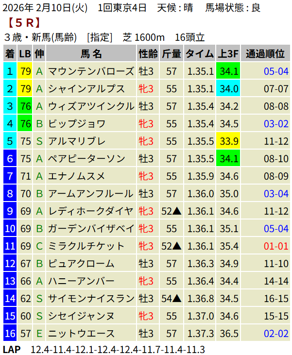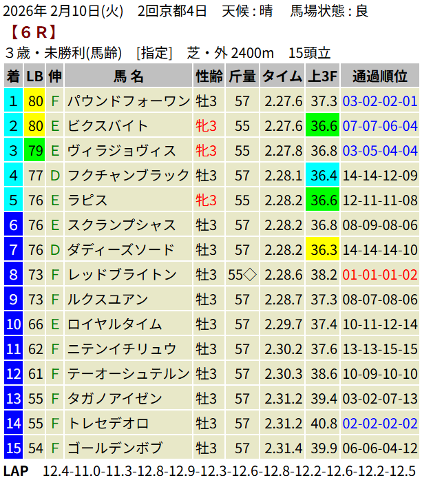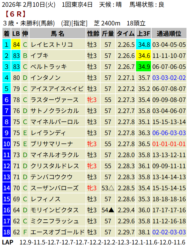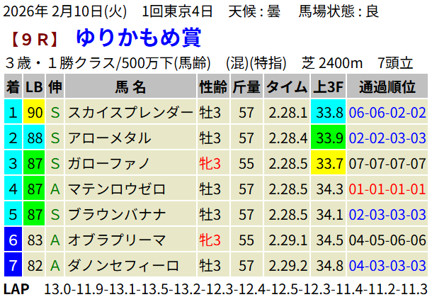 【LB指数レポート】2026/02/10 [きさらぎ賞]ゾロアストロ [ゆりかもめ賞]スカイスプレンダー [3歳新馬]マウンテンバローズ・エレガンスアスク [3歳未勝利]レイヒストリコ・パウンドフォーワン