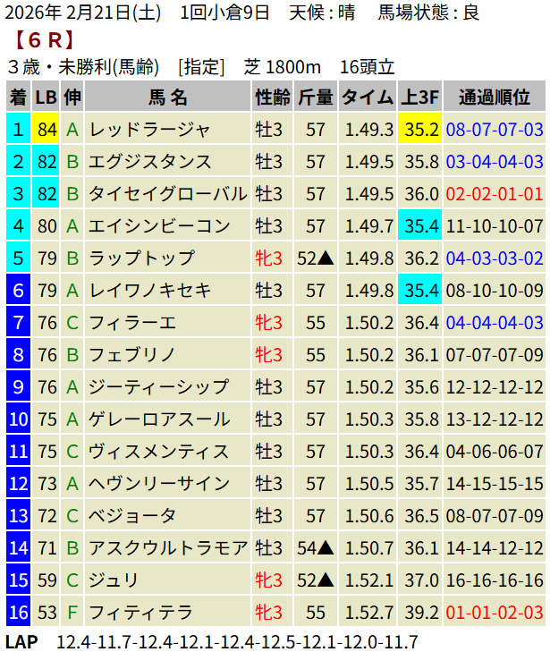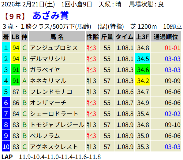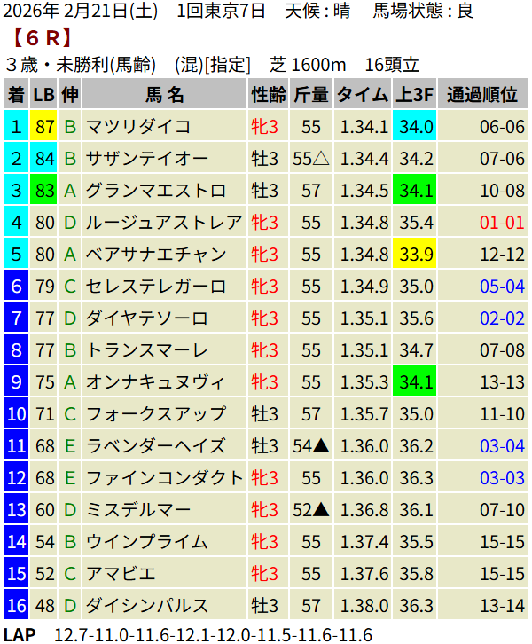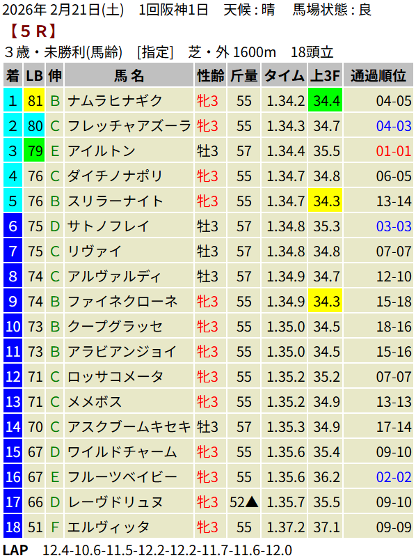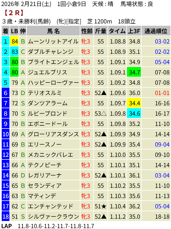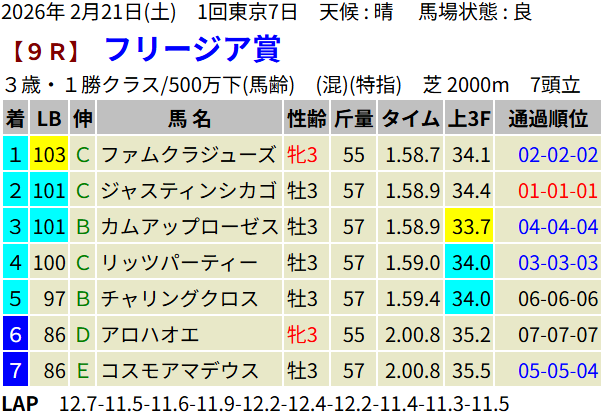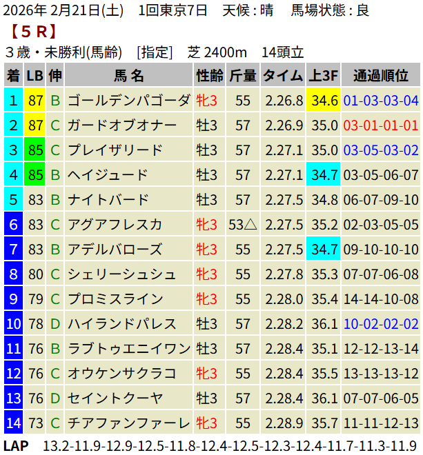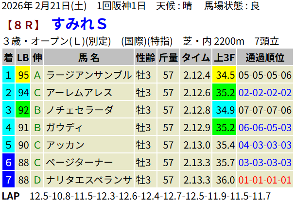 【LB指数レポート】2026/02/21 [すみれS]ラージアンサンブル [フリージア賞]ファムクラジューズ [あざみ賞]アンジュプロミス [3歳未勝利]マツリダイコ・サガルマータ・レッドラージャ・ゴールデンパゴーダ・ナムラヒナギク・ムーンリットアイル