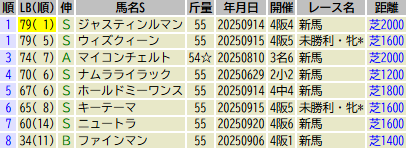 ※掲載データは出走馬名表が発表された木曜時点のものです。発走までに出走取消や競走除外された馬が含まれていることがあります。