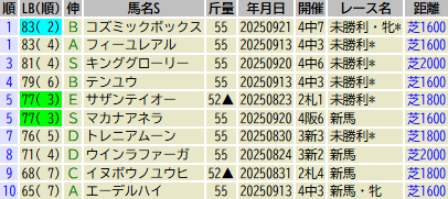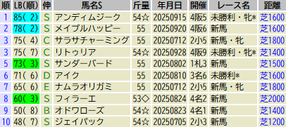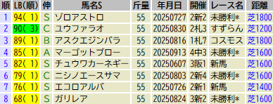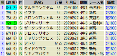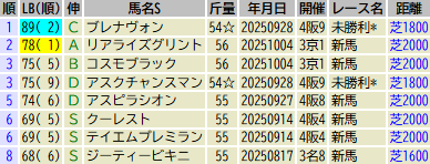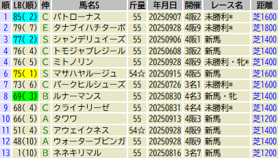 ※出走予定馬のLB指数最高値順です(中央開催芝)