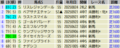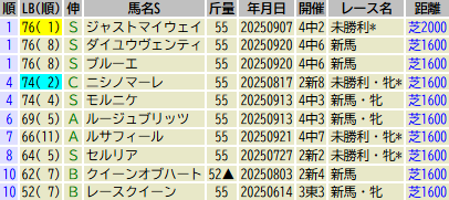 ※掲載データは出走馬名表が発表された木曜時点のものです。発走までに出走取消や競走除外された馬が含まれていることがあります。