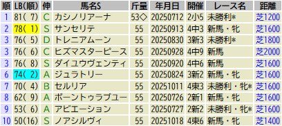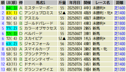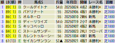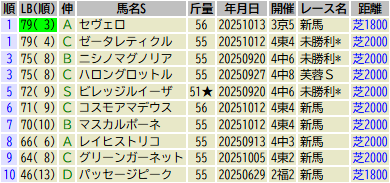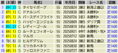 ※出走予定馬のLB指数最高値順です(中央開催芝)