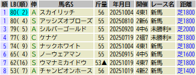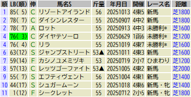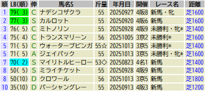 ※掲載データは出走馬名表が発表された木曜時点のものです。発走までに出走取消や競走除外された馬が含まれていることがあります。