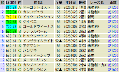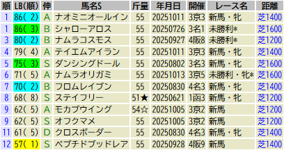 【LB指数 魂の◎】2025/10/25~10/26 アルテミスS・萩S・2歳未勝利