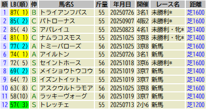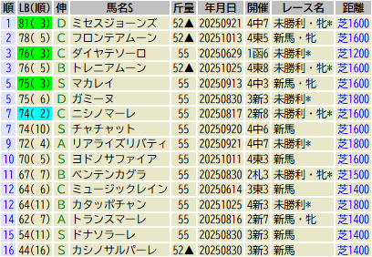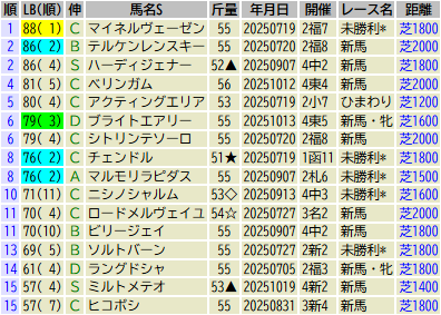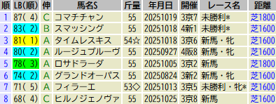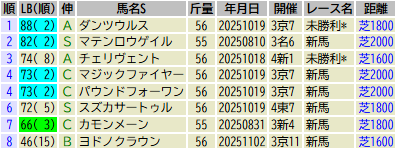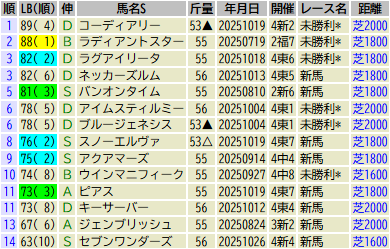 ※出走予定馬のLB指数最高値順です(中央開催芝)