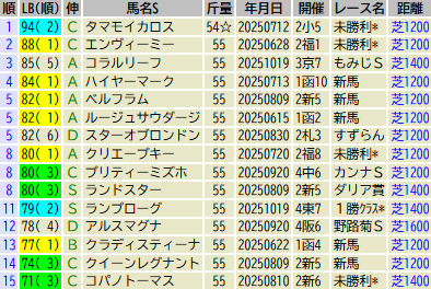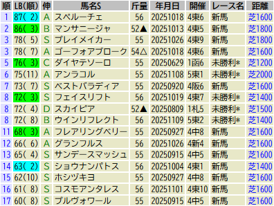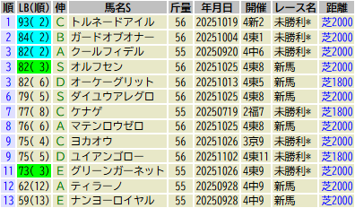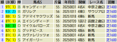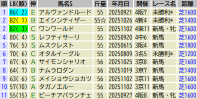※出走予定馬のLB指数最高値順です(中央開催芝)
