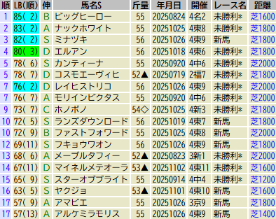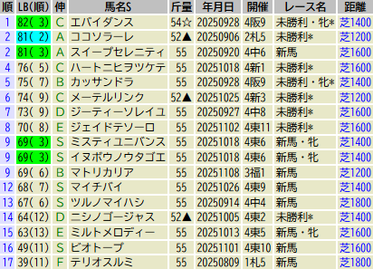 【LB指数 魂の◎】2025/11/15~11/16 デイリー杯2歳S・福島2歳S・黄菊賞・2歳未勝利