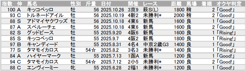 「Good!」実績馬→タマモイカロス・エンヴィーミー・ハイヤーマーク