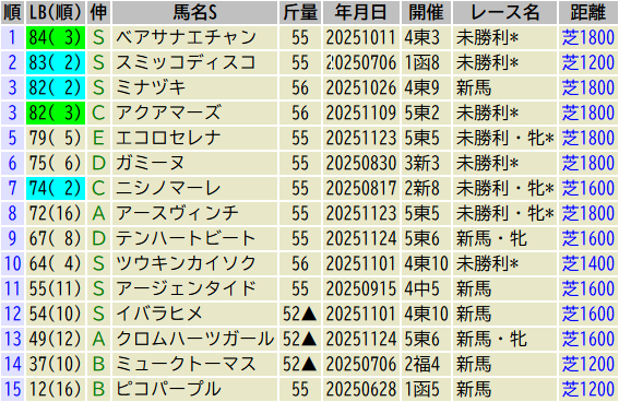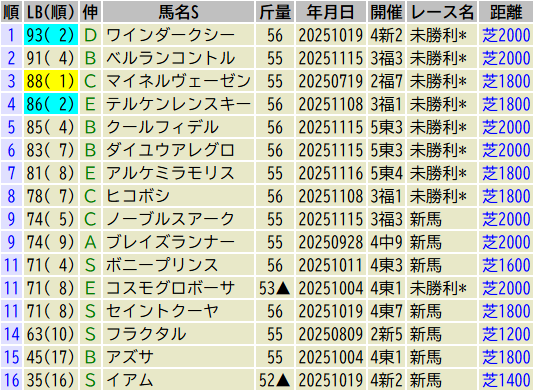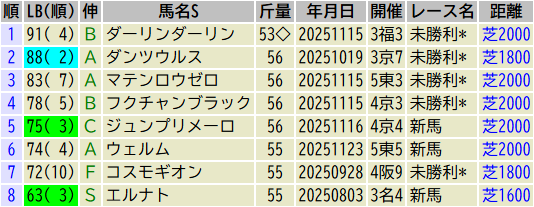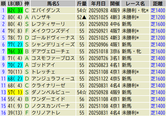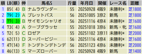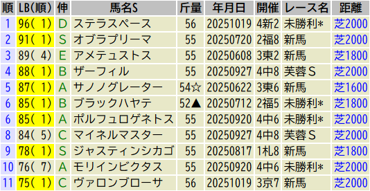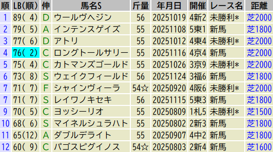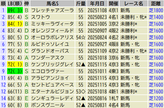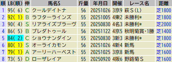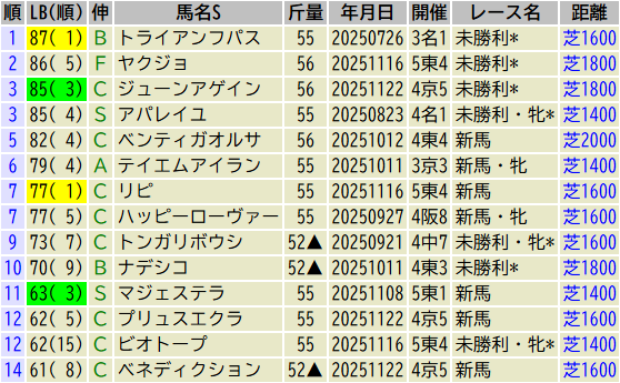※出走予定馬のLB指数最高値順です(中央開催芝)