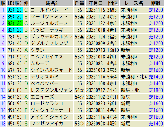 【LB指数 魂の◎】2025/12/06~12/07 葉牡丹賞・こうやまき賞・さざんか賞・2歳未勝利