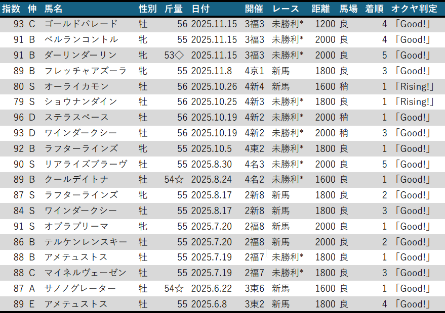 「Good!」実績馬→ステラスペース・オブラプリーマ・アメテュストス(2回)・サノノグレーター