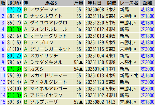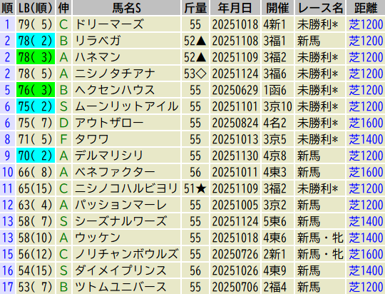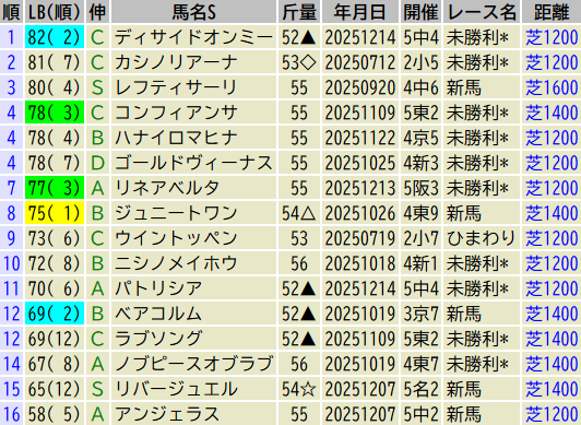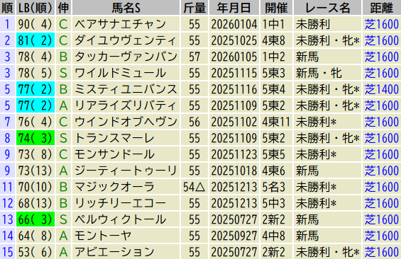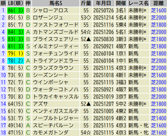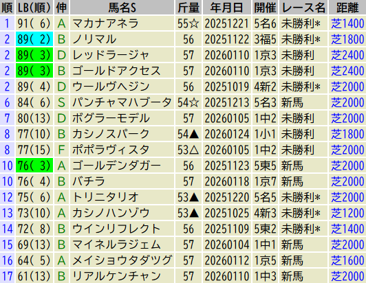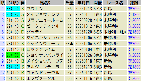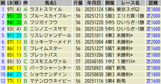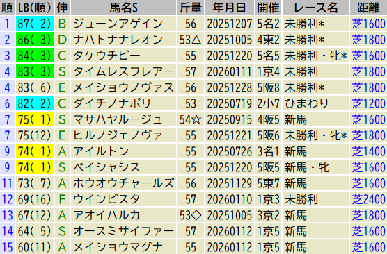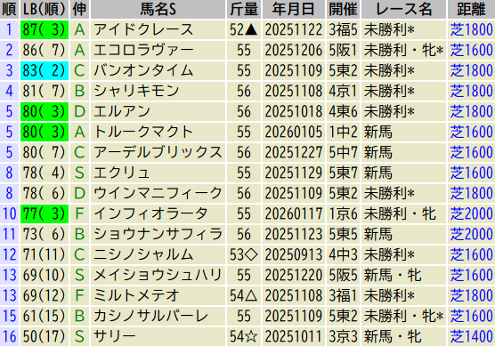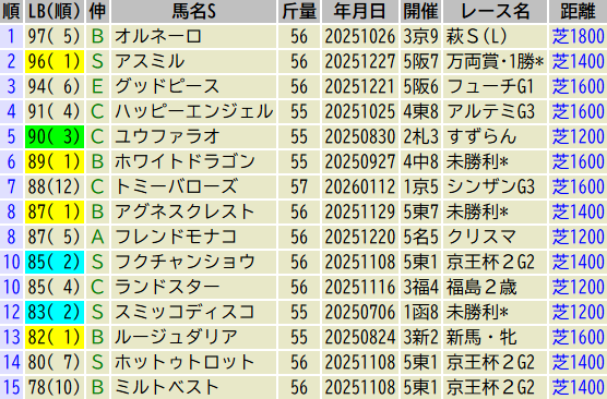 ※出走予定馬のLB指数最高値順です(中央開催芝)