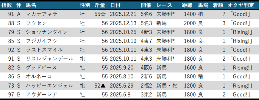 ■「Good!」「Rising!」実績馬一覧(日付順)