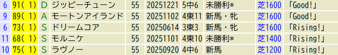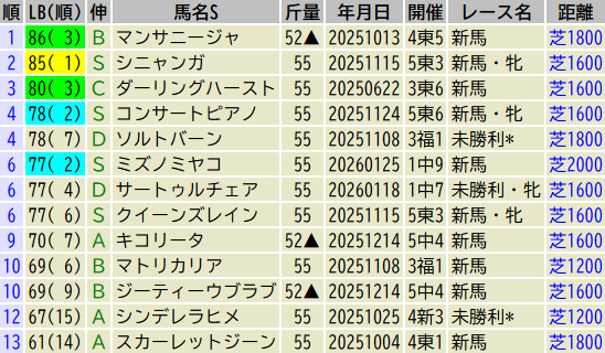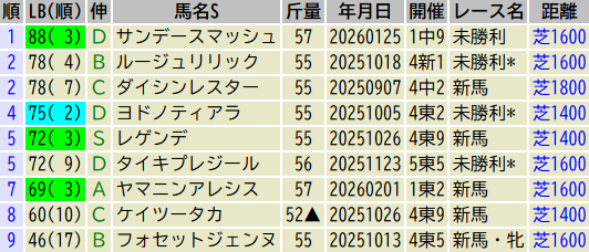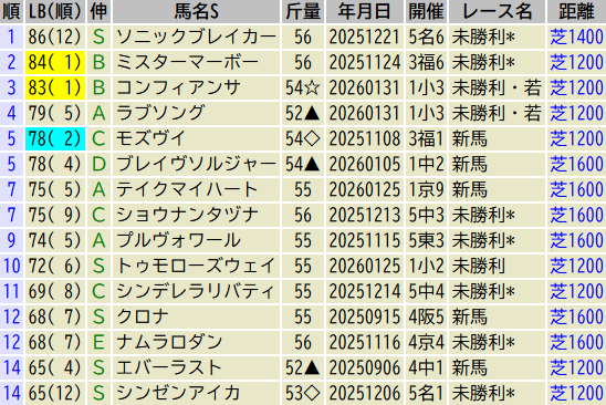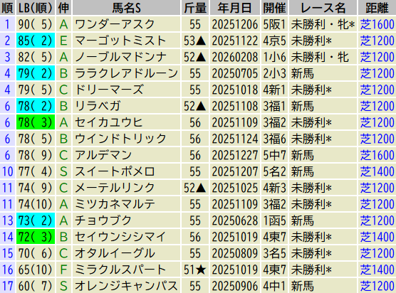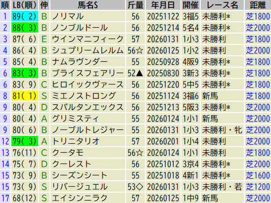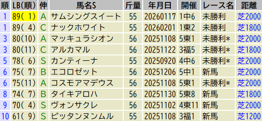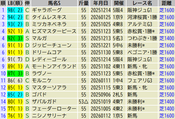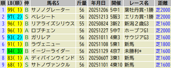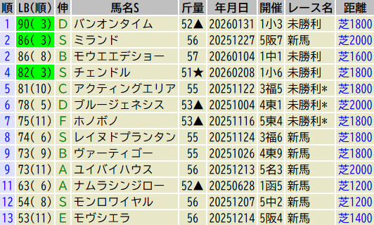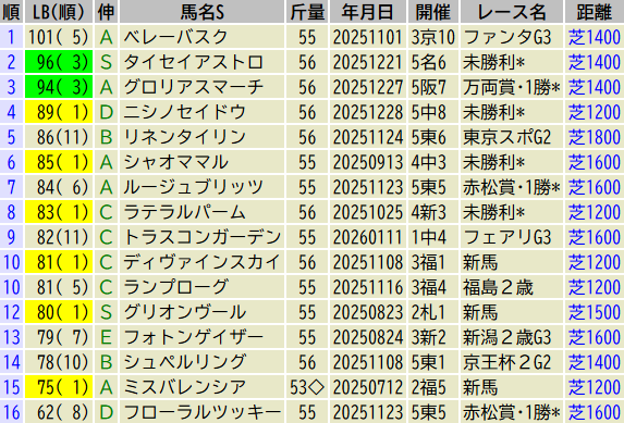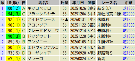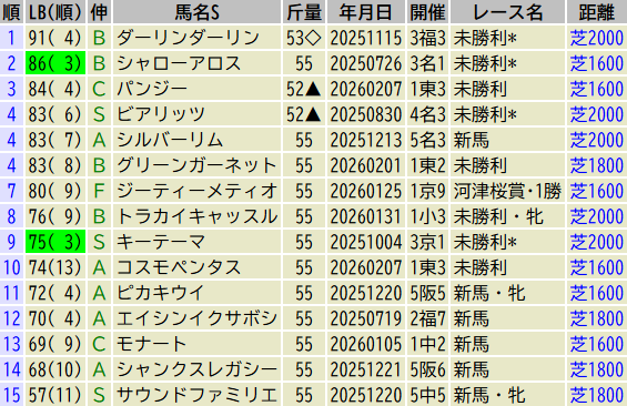※出走予定馬のLB指数最高値順です(中央開催芝)