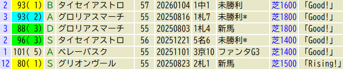 ※掲載データは出走馬名表が発表された木曜時点のものです。発走までに出走取消や競走除外された馬が含まれていることがあります。