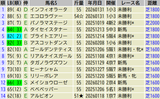 【LB指数 魂の◎】2026/02/21~02/22 すみれS・フリージア賞・あざみ賞・3歳1勝C・3歳未勝利