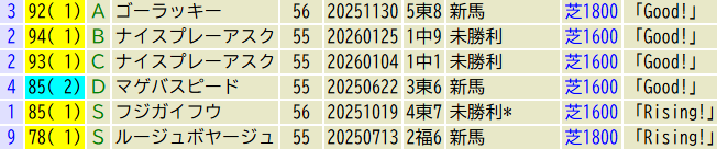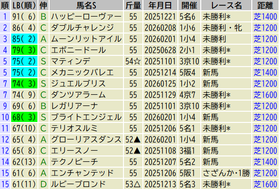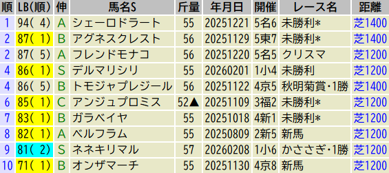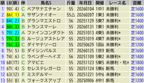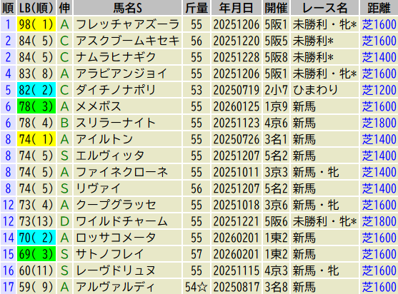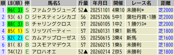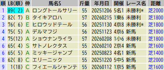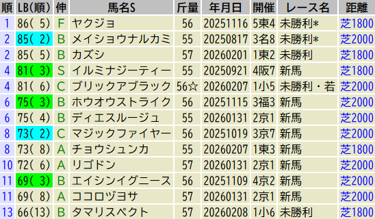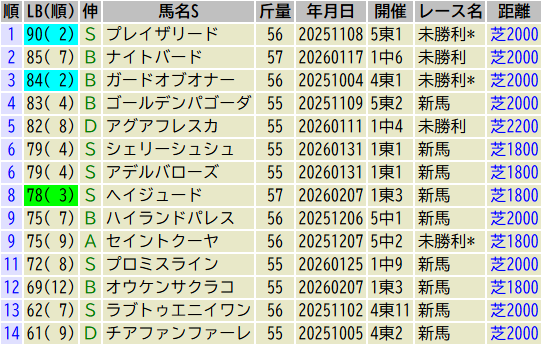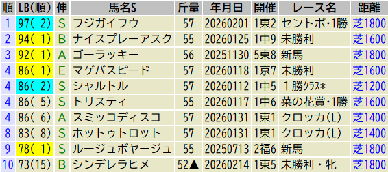 ※出走予定馬のLB指数最高値順です(中央開催芝)